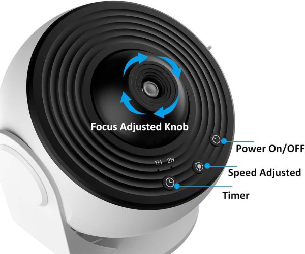 این پروژکتور کهکشانی قابلیت چرخش حول محور پایه خود را دارد و میتواند تصاویر را روی سقف یا دیوار در زوایای مختلف نمایش دهد.
